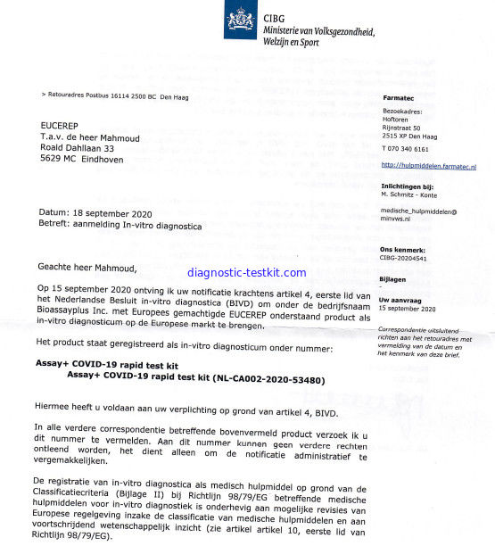 Jako profesjonalna produkcja zestawów testowych do diagnostyki in vitro, ściśle przestrzegamy QSR ( Rozporządzenie w sprawie systemów jakości )-TUV ISO 13485 z Niemiec i FDA z USA , wszystkie produkty są przedstawione w GMP ( Dobra praktyka produkcyjna) stan: schorzenie.Większość naszych surowców biochemicznych (przeciwciało koniugacyjne / antygen itp.) Jest importowana z laboratorium naszych ekspertów (Bioassayplus Inc.) w Kanadzie istnieje profesjonalny zespół badawczo-rozwojowy, który zapewnia kwalifikacje pochodzenia surowca.Obiecujemy, że wszystkie nasze produkty są kwalifikowane przez słynną międzynarodową autoryzowaną organizację na świecie.